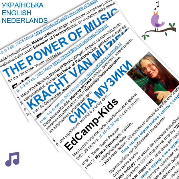 "A few years ago my mother and I went to a concert of Marja. Marja is a versatile, professional singer. She accompanies herself with various instruments. Her lyrics contain messages of life and love in different languages. My 93 year old mother often listens to her CDs on which Marja's voice sings harmonies as a sweet-toned whole. It makes my mother feel good."